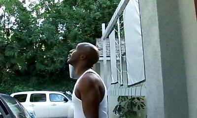 Horny black stud shovels his huge lollipop in slut's mouth and beaver then squirts on ass