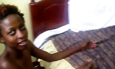 Her skinny black bod is shivering while the guy is pounding