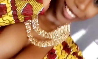 All nude black hottie flashes her bosoms and tells some horny stories