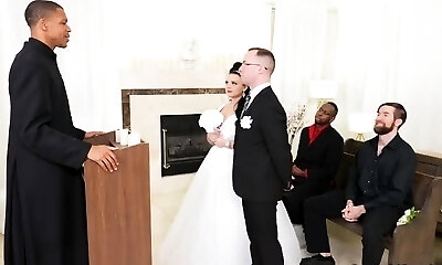 Insatiable blonde housewife, Cammille Austin likes to get down and dirty with three horny dark-hued dudes