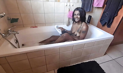 I masturbate witnessing my bashful sister in law take a bath and then I fuck her hard until I cum in her ass