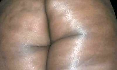 Black asshole packed with oil and his fat ebony cock
