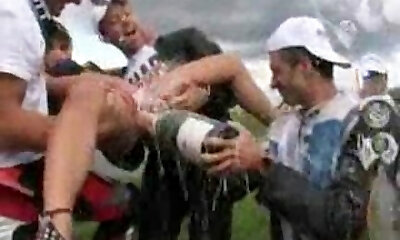 Flirty teens splay the biggest belt stiffys and spray semen all