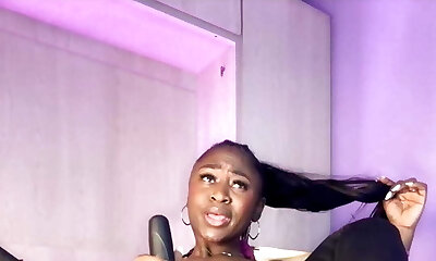 Ebony wakes up and prefers violence on her pussy!