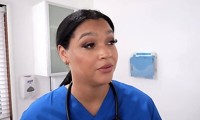 Dark-hued Nurse Keisha Kane seduce Patient to Interracial Fuck