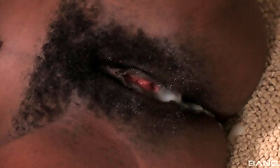 Curvy black whore Sarah Banks plays with her creamed pussy