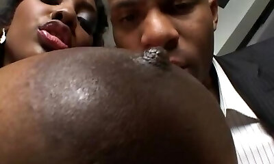 HUGE Breasts Amateur Ebony Babe Facial in Hardcore Interracial Casting