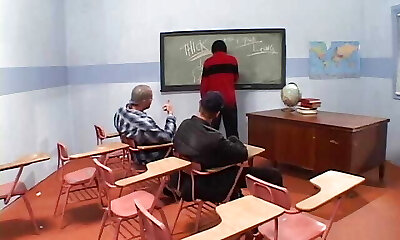 Hot mounds black chick in classroom sucking and fucking schoolteacher's black dong
