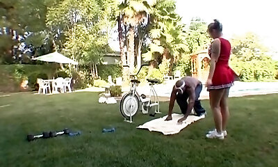 Horny cheerleader Liza Rowe droplets her uniform for a black dick
