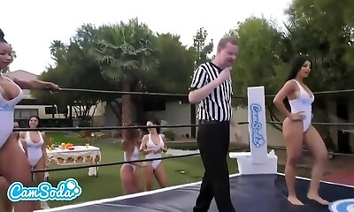 Public wrestling lesbians facesitting losers for audience
